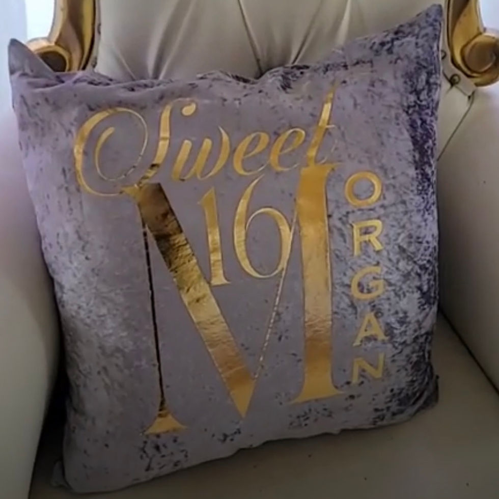 Custom Heat Transfer Vinyl cutouts for event pillows